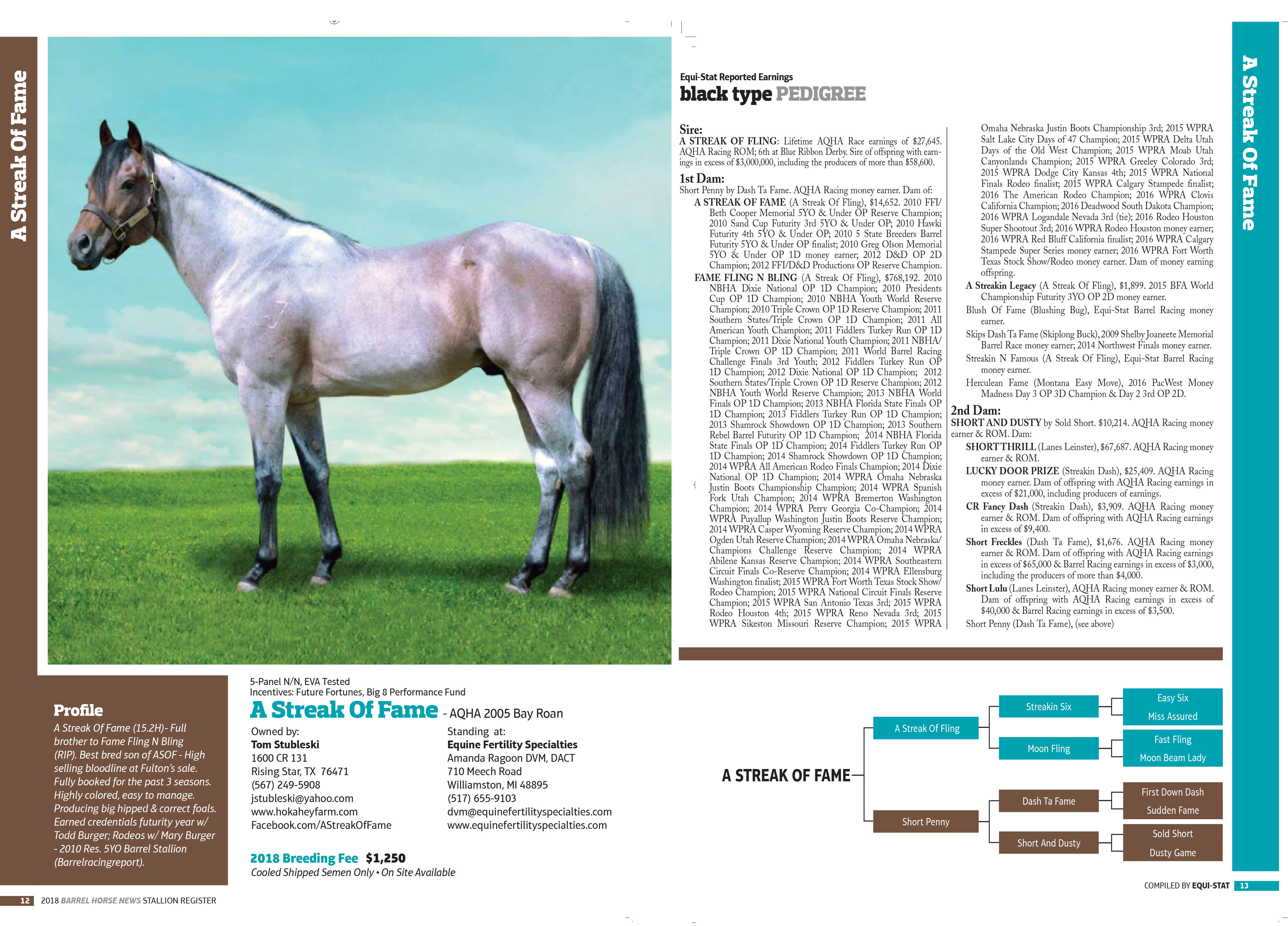 A Streak of Fame has earned his credentials (see above flyer) during his futurity year with Todd Burger as trainer/rider, placing at most of the futurities he was entered in, and rodeos with Mary Burger , earnings of ~$20,000 .. Streaker Is the best bred son of leading sire ASOF.