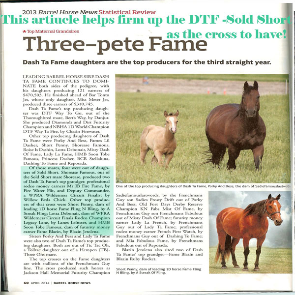 His dam Short Penny is at the top of the Magic crosses for ASOF, with Streaker ,Fame Fling N Bling and several up and coming prospects yet to run. Short Penny's breeding includes another magic cross that with DTF and her grandsire Sold Short . .